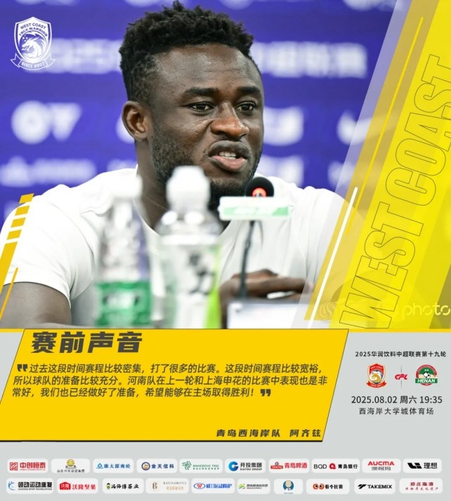 8月1日讯 明天19:35,中超第19轮,青岛西海岸主场对阵河南队,球队主帅邵佳一赛前表示,河南队换帅后攻防都表现不错。
